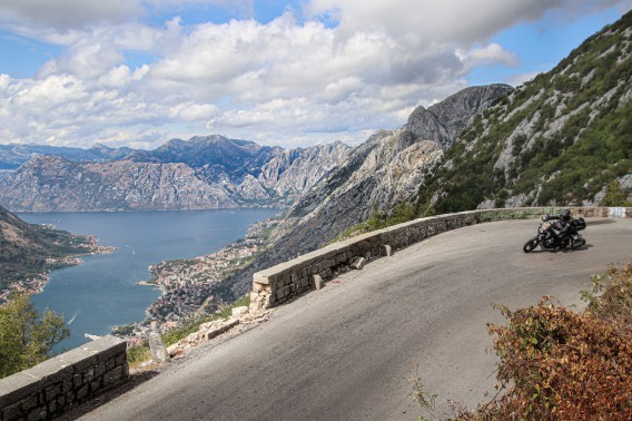 Trotz bescheidenem Wetter sind wir ergriffen, als wir von den Bergen herab kommend den ersten Blick von weit oben auf die Kotorbucht werfen. Sie wird oft als Europas südlichster Fjord bezeichnet, was zwar nicht korrekt, aber für den Laien optisch naheliegend ist. Im vorderen Teil der Bucht konzentriert sich der Badetourismus mit all seinen negativen Begleiterscheinungen - inklusive total überlasteter Straßen, auf denen es über einige zehn Kilometer nur stop and go voran geht. Besser man fokusiert sich auf den hinteren, fjordähnlichen Teil, der spektakulärer ist und bei dem man oft dicht am Wasser entlang fährt.
