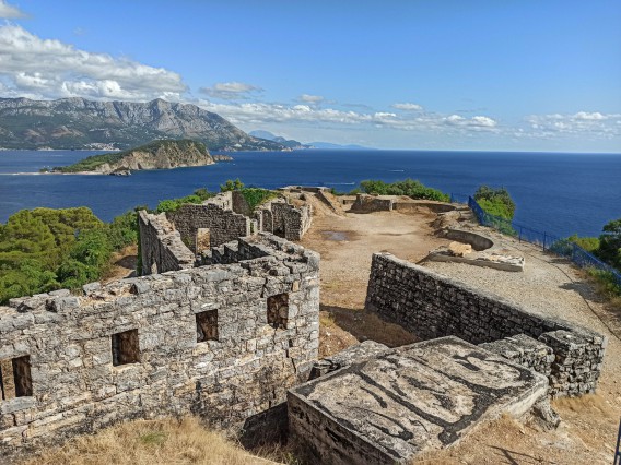 Entlang der Adria setzen wir unseren Weg gen Süden fort. Zum idealen Sonnenstand für ein Foto kommen wir beim Fort Mogren an, von dem aus man einen phantastischen Blick entlang der Küste hat.