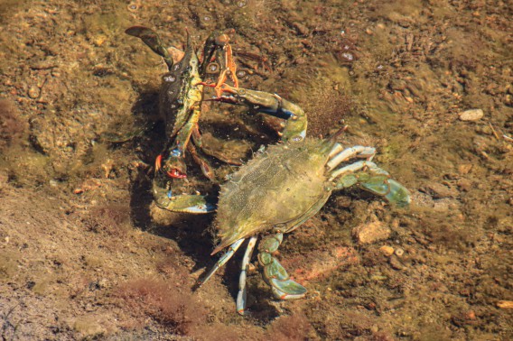 Die nächsten zweieinhalb Kilometer sind eine einzige Betongerade von zwei Meter Breite mit Kanälen links und rechts, in denen sich Unmengen handtellergroße Krebse tummeln.