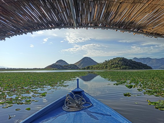 In Virpazar, am Nordende des Skadarsees, werden an gut einem Dutzend Ständen Bootstouren angeboten. Wir entscheiden uns für einen 2-Stunden-Trip früh morgens, da dann die Vogelwelt am aktivsten ist. Und in der Tat, wir sind von der Vielfalt und Menge der Sichtungen beeindruckt. So nimmt es beispielsweise ein Dutzend Kormorane ganz gelassen, als wir auf zwei Metern, fast zum Greifen nah, an ihnen vorbei schippern. Besonders stimmungsvoll empfinden wir die Fahrt durch "Kanäle" in riesigen Seerosenfeldern.