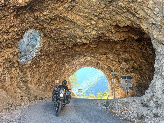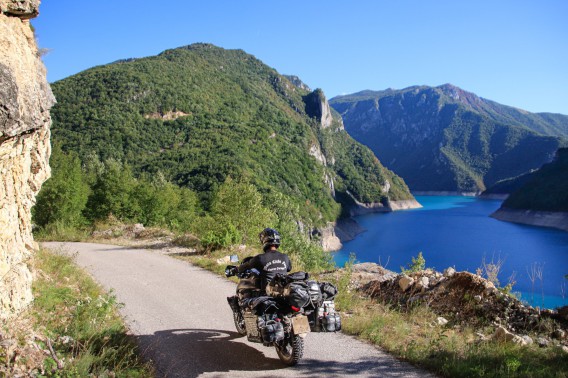 Im und um den Pivacanyon bekommt man als Motorradreisender glänzende Augen: Die Straße führt für viele Kilometer am Stausee entlang, der von hohen Felsen umgeben ist und im Sonnenlicht farbintensiv leuchtet. Zudem gibt es ein Feuerwerk an fotogenen Tunneln.
