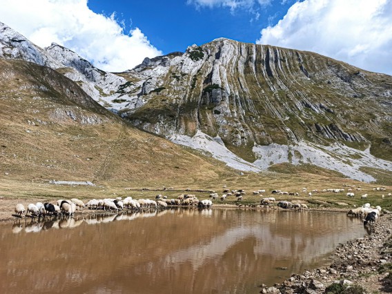 Die Möglichkeiten für Wanderungen von hier aus sind mannigfaltig. Die von uns gewählte hat auf 2.270 Metern ihren Höhepunkt – im eigentlichen, wie auch übertragenen Sinne: Der Blick aus schwindelerregender Position über den Veliko-Škrčko-See ist atemberaubend. Freilaufende Pferde- und Schafherden sind die Farbtupfer in der grandiosen Gebirgskulisse.