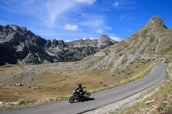 Nördlich des Durmitor verirrt sich kaum ein (Motorrad-)Reisender. Für montenegrinische Verhältnisse ist die Berglandschaft hier mittelmäßig, im Vergleich mit heimischen Strecken gibt es dennoch ein klares „Daumen hoch“.