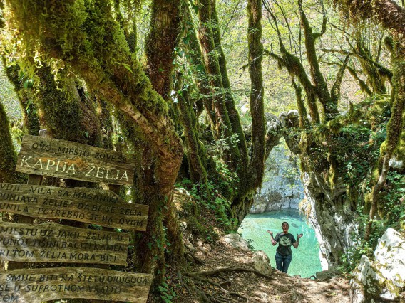 Auf unserem Trip durch die enge Schlucht scheuchen wir Dutzende von Eidechsen auf – in zig Farben und Größen. Eine Schlange nimmt Reißaus vor uns, als wir uns einen der smaragdgrünen, glasklaren Pools im Fluss näher anschauen wollen. Am Tor der Wünsche, einem Felsbogen, durch den man pittoresk auf den farbig schimmernden Fluss blickt, wird uns bewusst, das wir gerade wunschlos glücklich sind. Klasse!