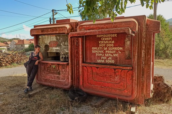 In Berane zieht uns ein verfallener Industriekomplex an, der erste überhaupt, den ich in diesem Land wahrnehme. Entlang der Zufahrt erstreckt sich ein Roma-Slum. Wir werden von vielen Augenpaaren verfolgt. Auf dem riesigen Gelände der Fabrikruine konnte ich vor wenigen Jahren noch ungehindert umherfahren und fotografieren. Diesmal wird uns schnell von neuen Nutzern klar gemacht, dass wir unerwünscht sind. Auf dem Nachbargrundstück verrotten gut ein Dutzend Busse mit Beschriftung eines Luxemburger Unternehmens in unterschiedlichen Stadien der Ausschlachtung. Die Hälfte hab ich mir schon samt einigen verlassenen Werkhallen angeschaut, als wie aus dem Nichts ein riesiger Wachhund flott auf mich zu trabt, der seine lose Kette hinter sich herzieht. Sofortiger Rückzug ist auch hier angesagt. Die rauchschwangere Luft, die finster dreinblickenden Roma und vielleicht auch der graue Himmel, all das trägt zusammen mit dem gesamten Ambiente dieser Stadt dazu bei, das wir uns leicht unwohl fühlen und gleichzeitig fasziniert sind. Das hier ist jedenfalls ganz weit weg von der Hochglanz-Kreuzfahrtschiff-Brochüren-Welt der Kotorbucht!