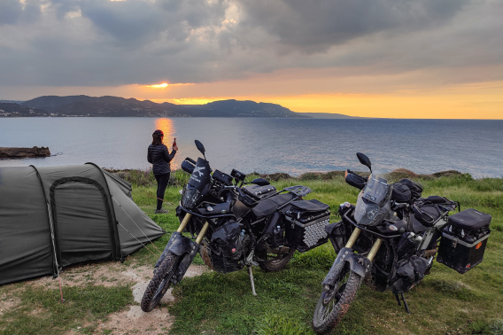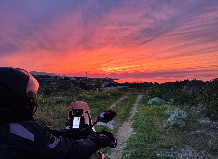 Unsere letzte Nacht verbringen wir wieder einmal in erstklassiger Lage wild zeltend. Romantischer Sonnen-Unter- und -Aufgang inklusive - samt Meeresbrandung an einem einsamen Strand.