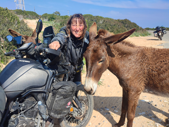 Die letzten 30 km bis zum Kap Apostoles Andreas machen dann nochmal richtig Spaß, auch wenn es mich in einer Pfütze mit 60 cm Seitgefälle hinhaut. Außer angekratztem Enduristen-Stolz sind keine Schäden zu beklagen und das Malheur spätestens vergessen, als zig Esel zu Simons großer Verzückung zum Möhrenschnorren über uns herfallen.