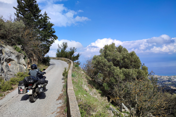 Die kleine Asphaltstraße, die wir anderntags parallel zur Nordküste durch die Berge nehmen, entpuppt sich als Kracher. Eine spektakuläre Aussicht jagt die nächste und auch der wie für Motorradfahrer gemachte Verlauf des Sträßchens, das wir auf ganzer Länge für uns alleine haben, ist ein Genuss.