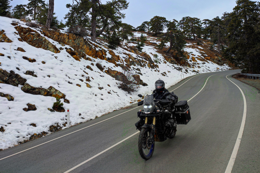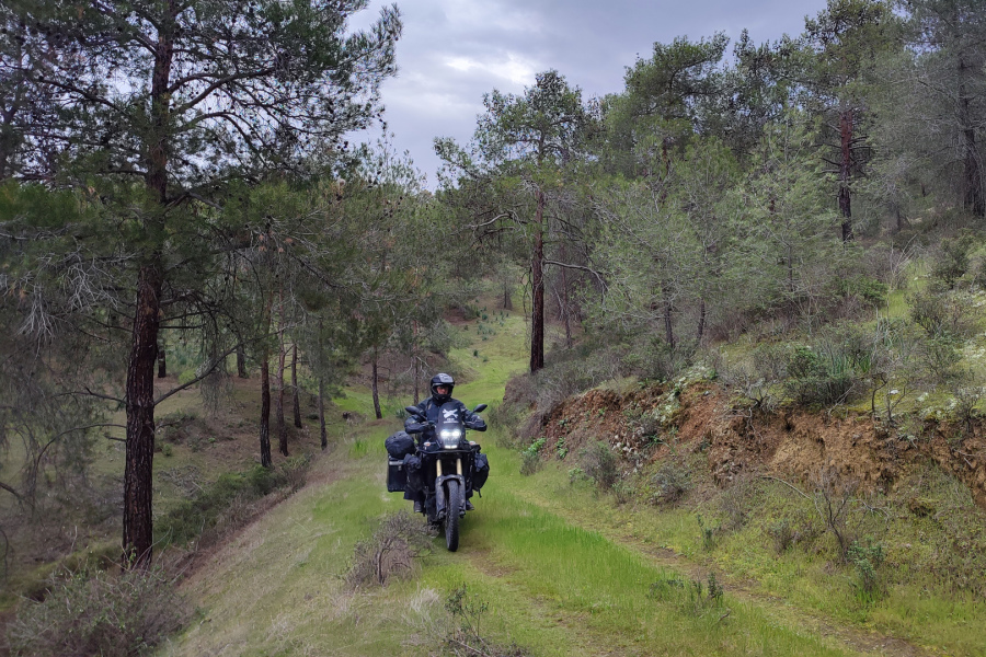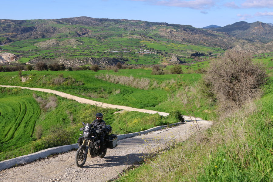 Im bergigen Landesinnern wird uns Enduro-Wandern vom Feinsten geboten. Auf erstklassigen Erd- und Schotter-Pisten fährt es sich angenehm entspannt, so dass Muse zum Genießen der idyllischen Täler bleibt, in denen wir beschaulich dahin plätschernden Flüsschen folgen. Auch auf Asphalt macht Zyperns Bergwelt Spaß. Enge Kurven reihen sich unermüdlich aneinander - Drehwurm garantiert auf den schmalen Sträßchen, auf denen kaum ein Fahrzeug außer uns unterwegs ist.