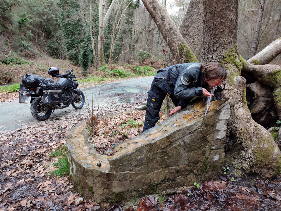 Ein aus einem Baum entspringender Brunnen, prachtvolle Klöster, fotogene Steinbrücken, eine Straße, deren Spuren sich für einen Baum teilen – all das ist die Garnierung des zweiten Fahrtages in den Bergen.